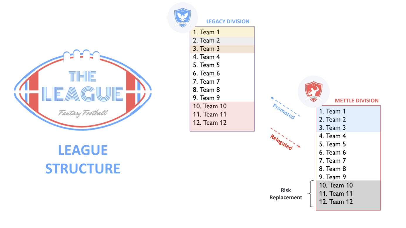 Relegation LeagueRelegation League StructureRelegation LeagueSy GallimoreAug 16, 2022ShareThe Relegation League has two tiers (divisions), each with twelve teams. The bottom 3 of each division risks demotion or replacement, while the top 3 of each division celebrate medals or promotion.