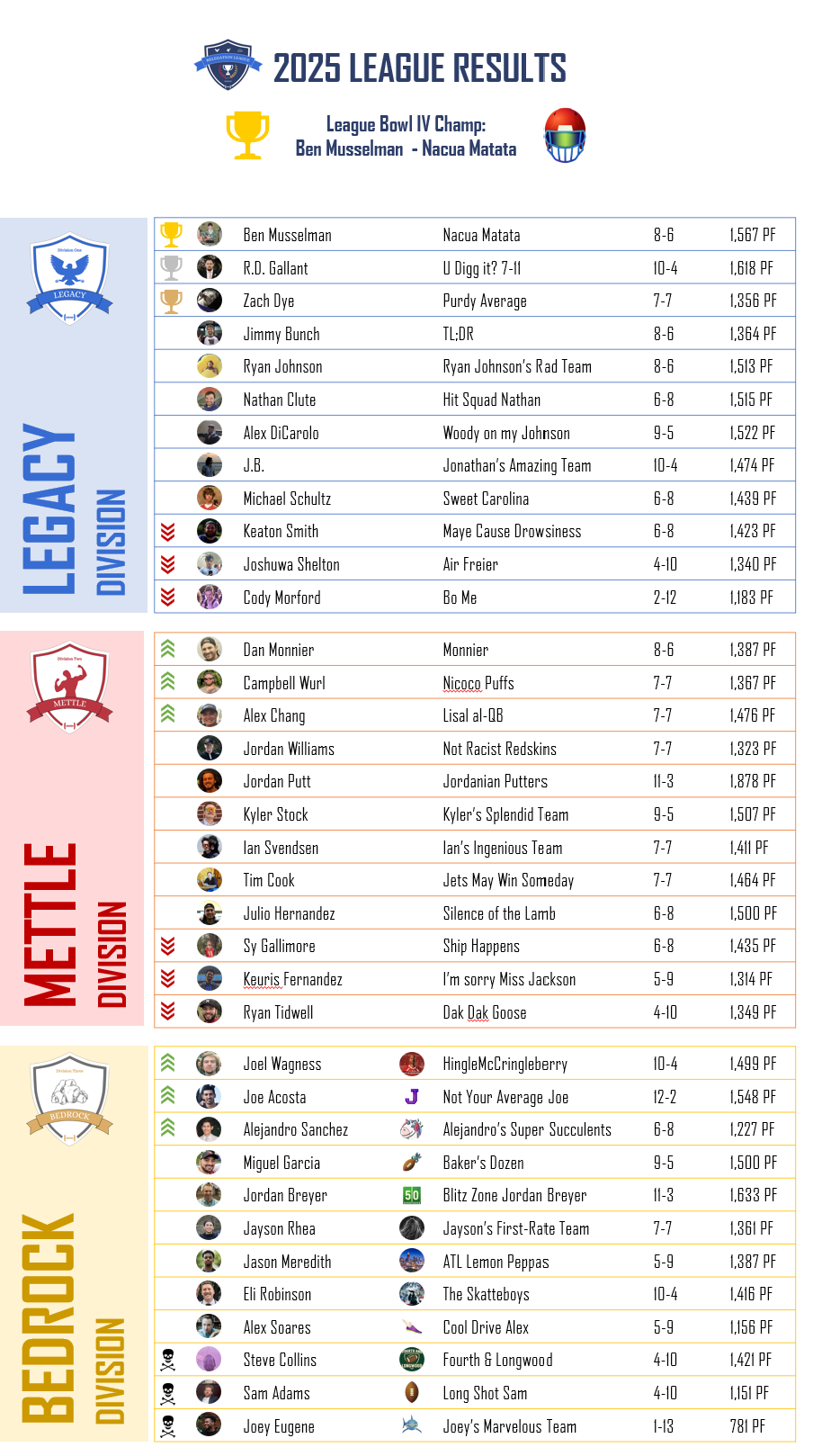 First: Daniel Monnier (Monnier) - a true worst-to-first turnaround during the season to secure back-to-back promotions from Bedrock up to Legacy